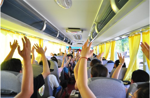 从医院出发至浏阳目的地有两个多小时的车程,为有效利用时间和创新支部组织活动形式,支部大会选择了在大巴车上举行。