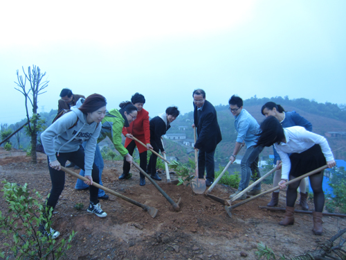 活动结束后大家在自己种植的“小树林”里合影留念,并一致希望今后要将公益活动和爱心继续延续下去。大家纷纷表示,此次植树活动,使我们将环保的口号践行到实际行动中,并在劳动中提高了思想意识,同时也激发了党员之间的团队协作精神,增进了党员之间的感情。