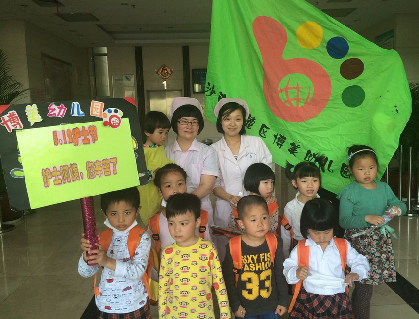 今年5月12日国际护士节,长沙市博美幼儿园的小朋友们为湘雅三医院儿童保健中心的护士阿姨们献上了节日的祝福。小朋友们带着小口罩,背着小书包,高举着祝福牌匾,有模有样走进了湘雅三医院儿童保健中心,为白衣天使们送上了美丽的盆栽,温情的康乃馨和甜蜜的香吻。