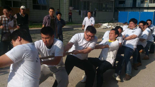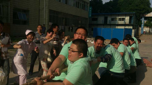 “各就各位!预备!”随着黄进华副院长一声清脆的哨响,我院男子拔河比赛于5月12日下午4:30在加油声中开赛了。各路好汉云集内科楼前,一决高下。