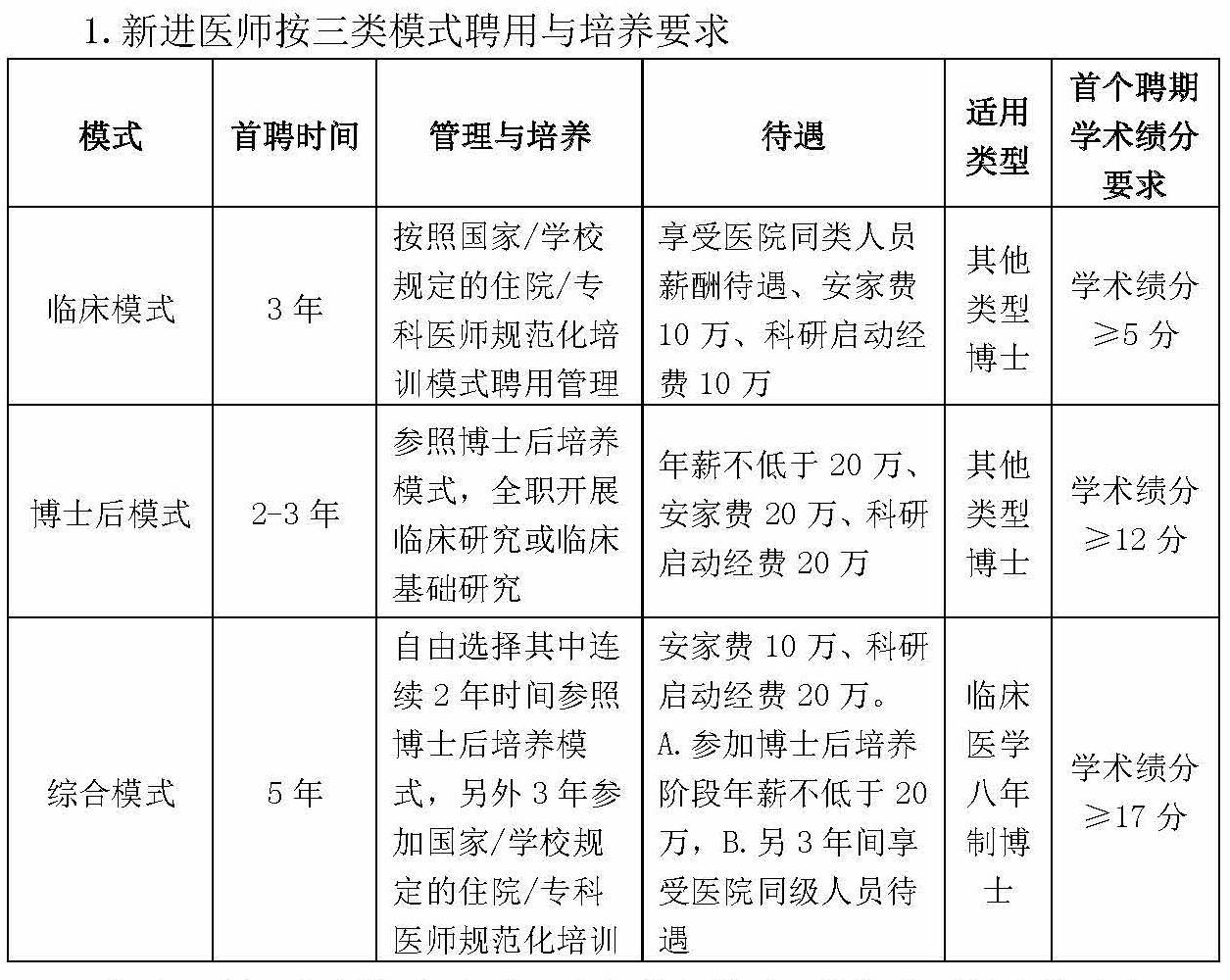 临床医学八年制毕业生进入综合培养模式,其他类型博士毕业生可结合科室岗位和用人需求,选择进入临床模式或博士后模式。