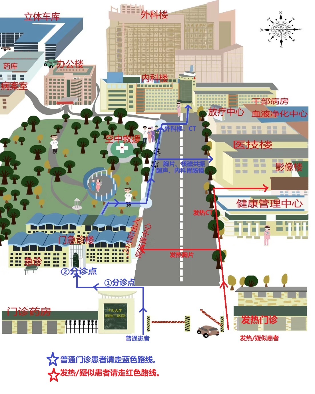 4、患者将通过三次预检分诊,进行体温检查和流行病史询问,分别是医院南门口、门诊楼南门、诊区,请您谅解并配合。
