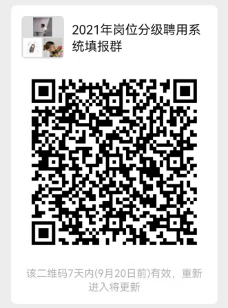 需填报系统的老师请扫码加入“2021年岗位分级聘用系统填报群”