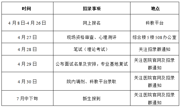 招收信息将在医院官网发布,考核具体安排将在招录QQ群通知,敬请关注。