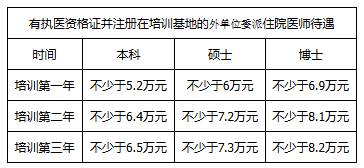 外单位委派住院医师与委派单位、培训基地签订三方培训协议,明确培训期间的相关权责,在培训期间原人事(劳动)关系不变,基本工资和社会保险由委派单位支付,培训期间绩效奖金、晚夜班费、国家和湖南省补助参照本院同类人员根据绩效考核结果发放,培训对象培训结束后回原单位工作。以上各项待遇累加总额标准如下: