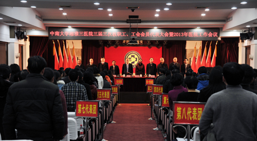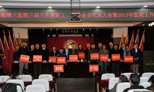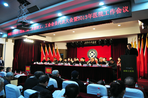 3月2日,中南大学湘雅三医院召开第三届三次职代会、工代会暨2013年医院工作会议。会议号召全体干部职工以党的十八大精神为统领,在国家新医改和中南大学改革大潮中,抢抓机遇,励精图志,奋起直追,将湘雅三医院建设成为“顶天立地”的国家队,为我国医疗卫生事业的发展和人民群众的健康,为中南大学的腾飞,为重振“南湘雅”雄风,做出“三院人”应有的贡献。