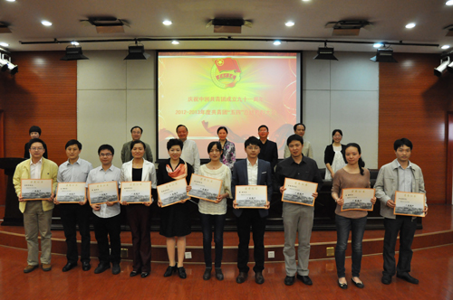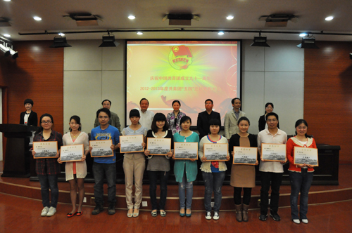 吴希林副书记宣读了《关于表彰2012-2013年度共青团工作先进集体、优秀个人的决定》。主席台就座的领导为获奖集体及个人颁奖。