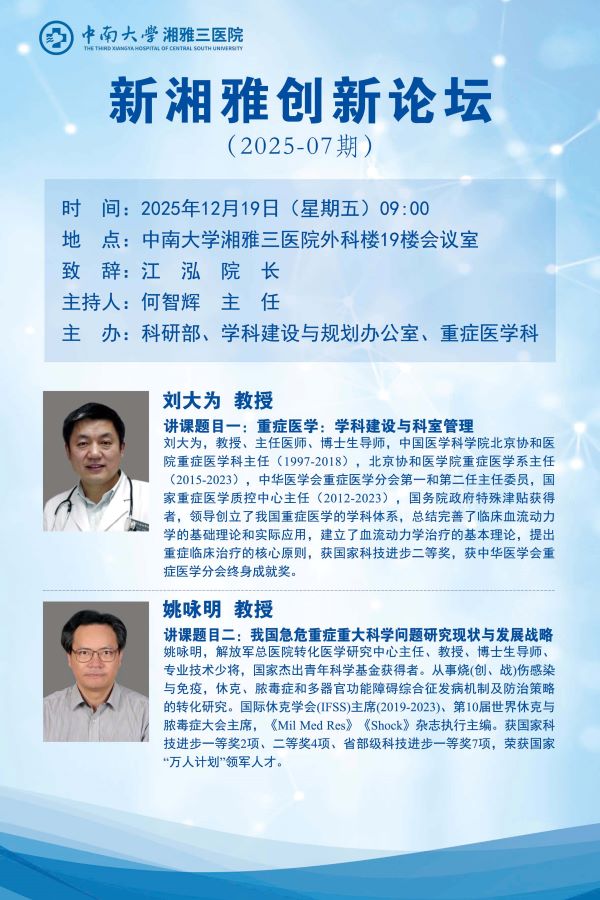 [下一篇] 新湘雅·重症对话--重症肾脏研讨会